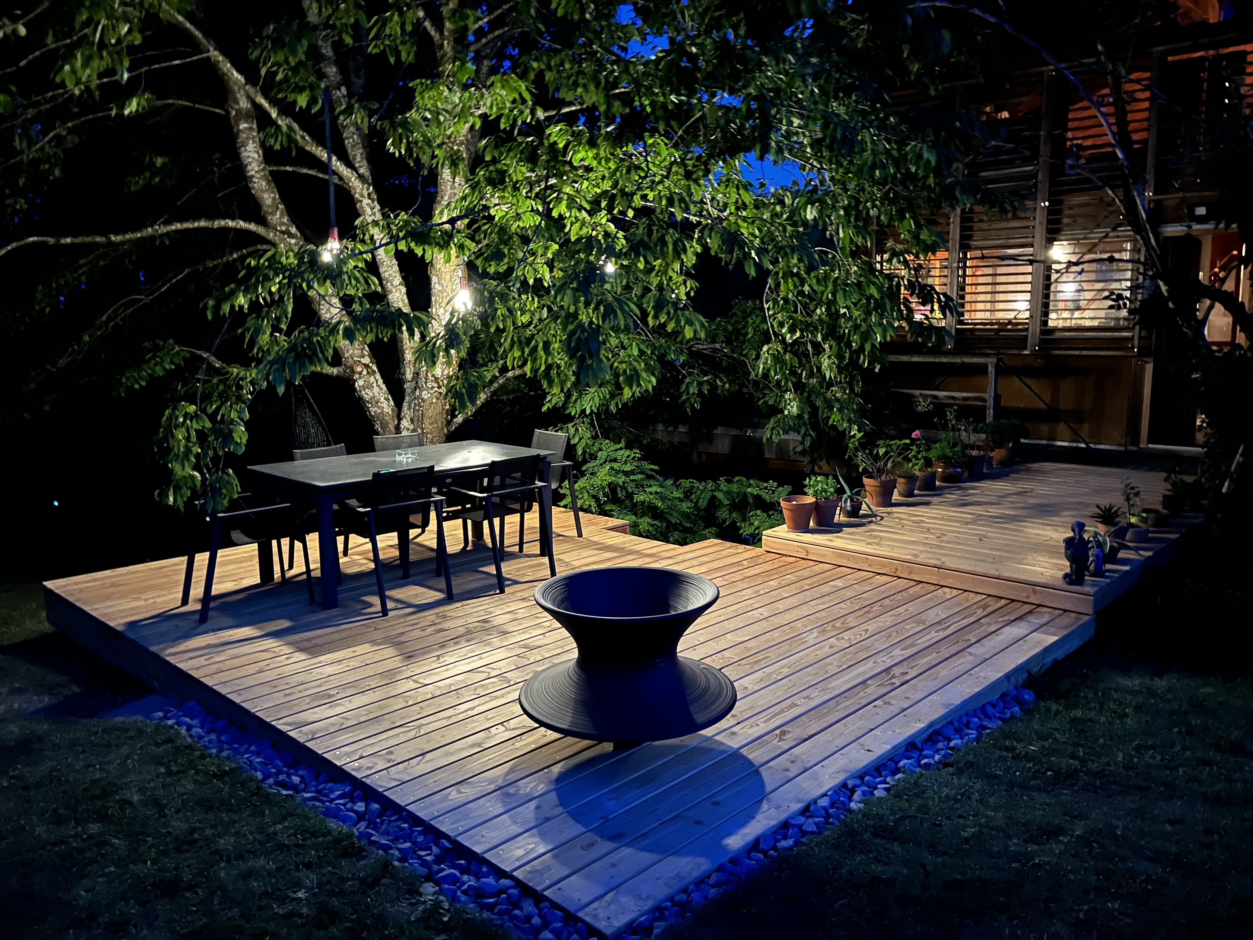 Merci à Bruno pour ma terrasse que je trouve magnifique! Le bois douglas est top, les finitions aussi, l'idee du bac en chene tout autant. Un petit air de vacances pour ma maison.
