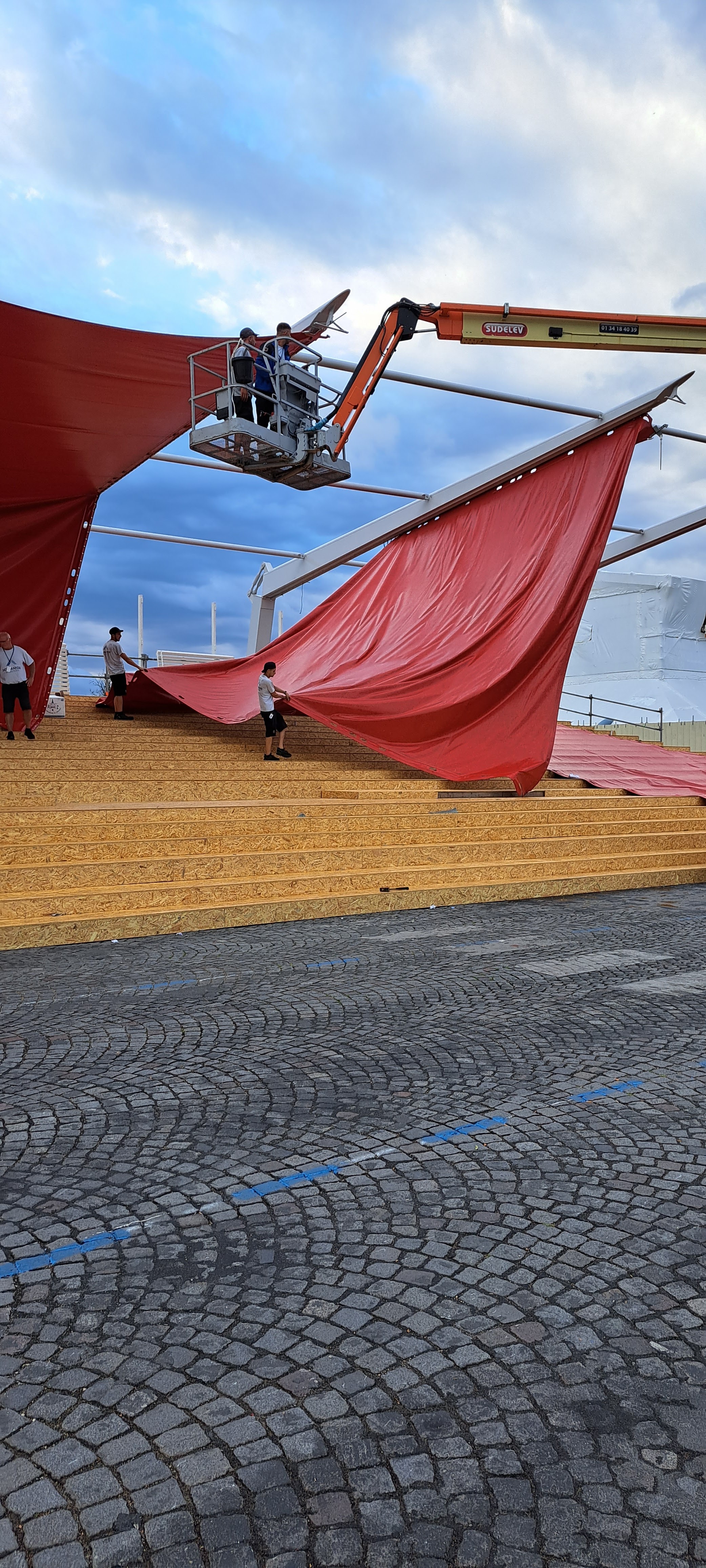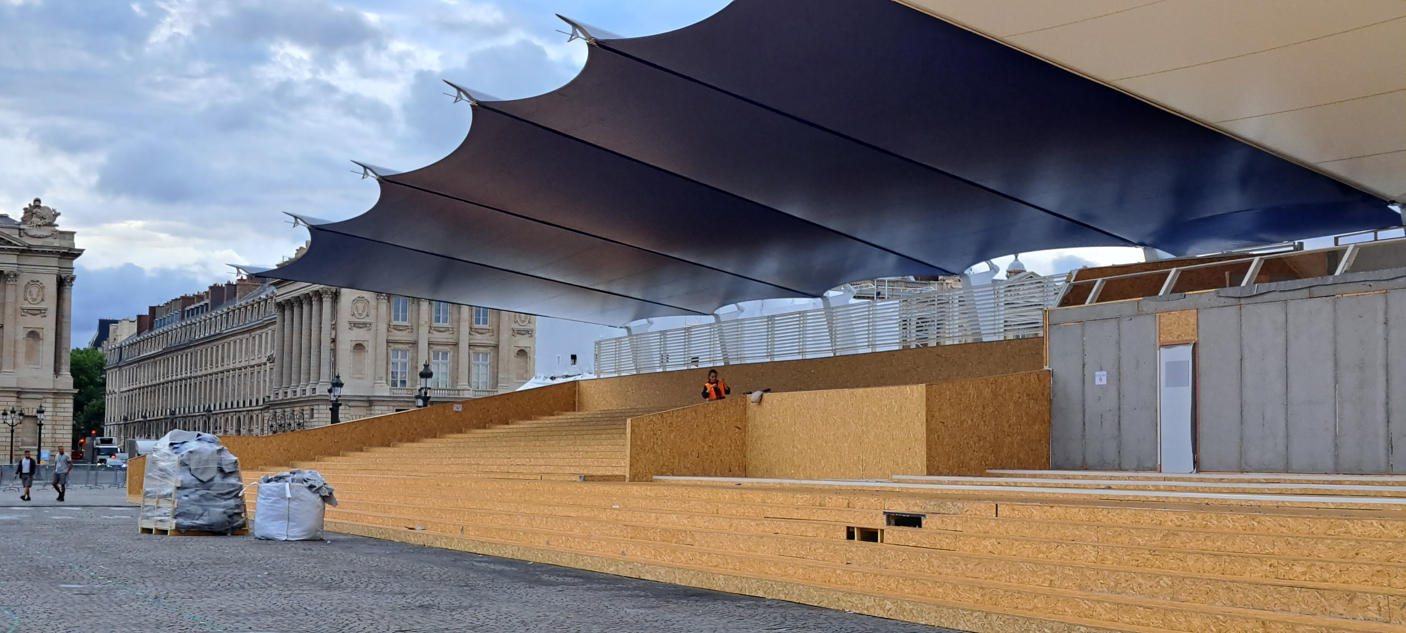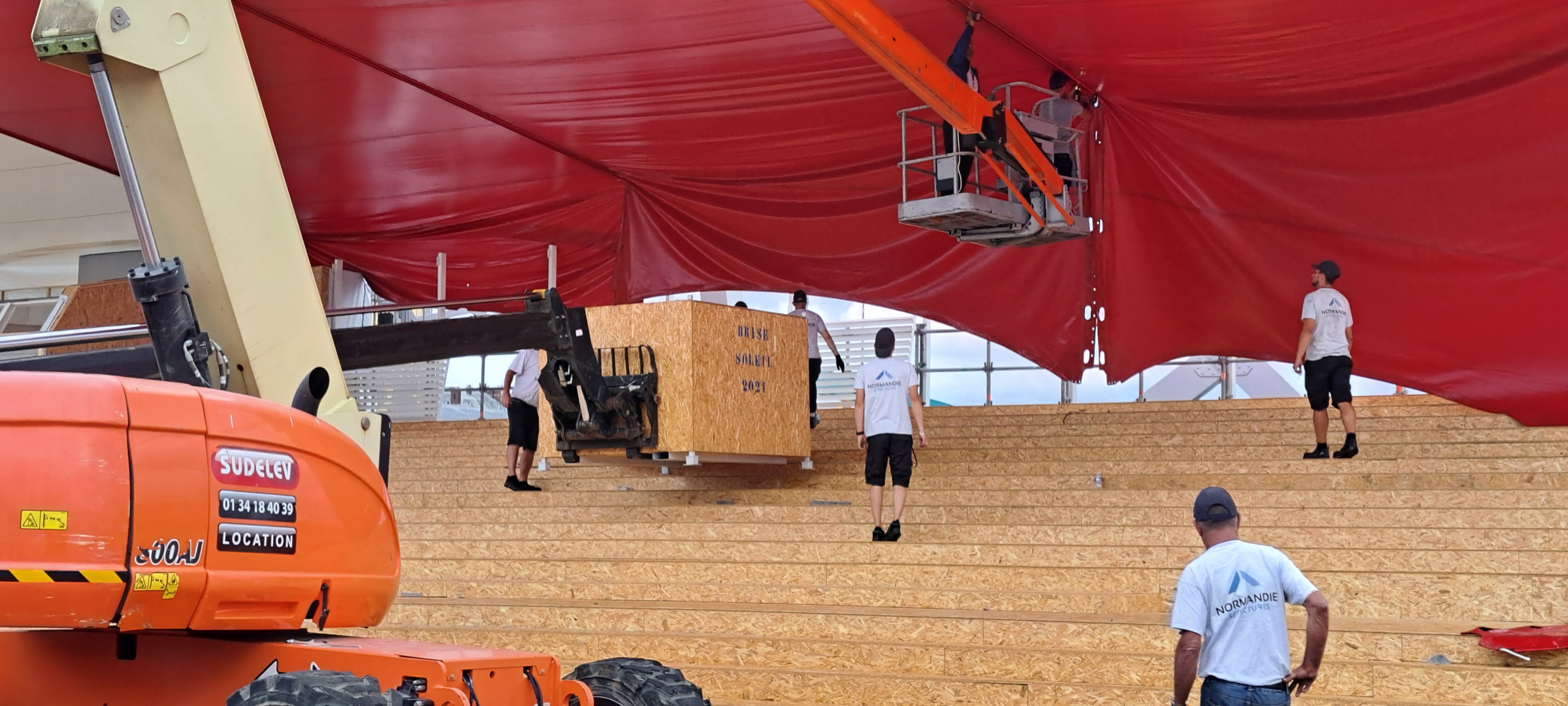 Du bleu, du blanc, du rouge!! Et oui la tribune présidentielle du 14 juillet démontée par Normandie structures. Beau souvenir mais voilà il faut bien démonter et patienter jusqu'en 2025 avant de retrouver le défilé sur les Champs-Elysées!!