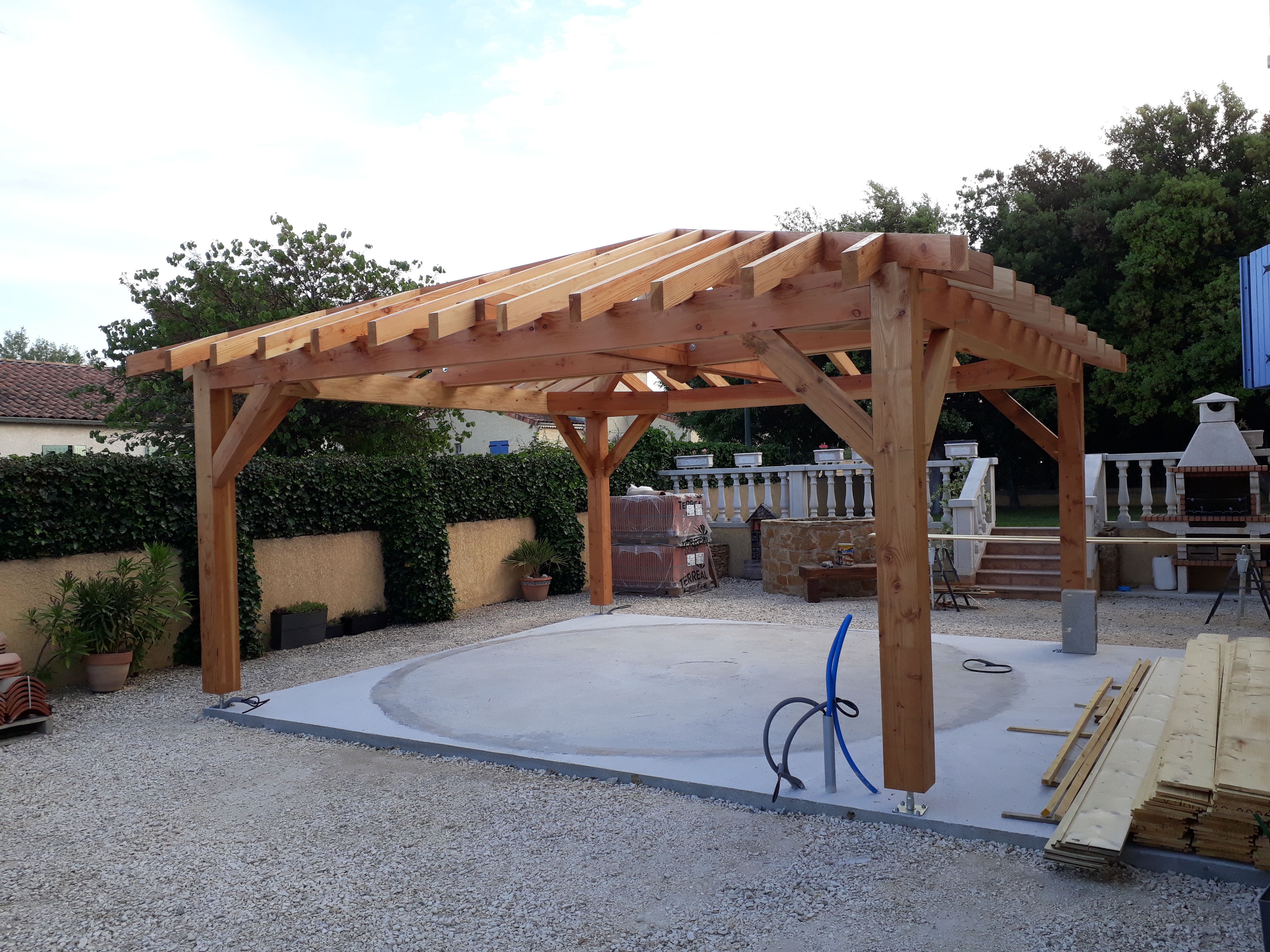J'ai commandé un carport pour 2 voitures avec une profondeur non standard ( plus grande profondeur ). J'ai été agréablement surpris par la qualité du produit livré. Le bois est de bonne qualité, bonne finition et le délai de livraison a été respecté malgré le confinement. Ce professionnel est sérieux et connait bien son métier. La structure du carport respire la santé, les accessoires de montage et le repérage des pièces, permettent de monter le carport sans difficulté. Il faut malgré tout prévoir un monte poutres mécanique que j'ai loué à Kiloutou ( 170€ la journée ) et être à 2 pour mettre les poutres sur l'appareil car seul, c'est impossible. Certaines pannes pèsent plus de 150 kg. Avec des tuiles type GR13, le carport est superbe. Un conseil, passer une couche de lasure Cécil LX530 chêne doré avant montage et fixer du contreplaqué profil mouchette ( imitation lambris sur une face ) sur les chevrons avant la pose des tuiles ainsi qu'une toile sous toiture entre le contreplaqué et les tuiles. Vous aurez un super rendu et une protection maximale de votre carport. Je conseil cet artisan qui est très gentil et de bon conseil.